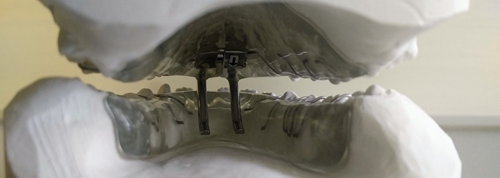 Horizontales Wachstumsmuster: Bei Distalbisslage und Tiefbiss bei einem horizontalen Wachstumsmuster sollte die Inklination der schiefen Ebene auf 55° eingestellt werden. Es erfolgt so eine Beeinflussung der Oberkieferbasis im Sinne einer Anteinklination.